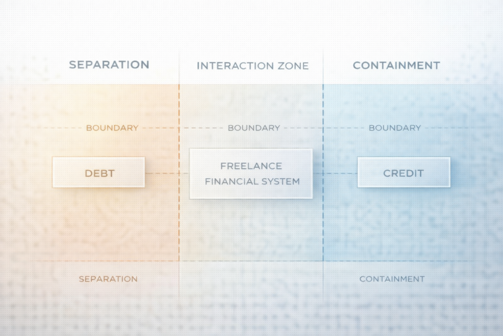 Debt and credit are adjacent system domains. They influence each other under stress, yet they retain distinct logics, signals, and failure modes. This asset formalizes that distinction.