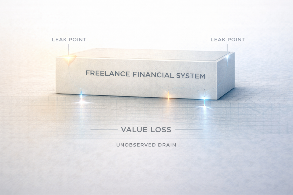 This page explains income leak analysis for freelancers, focusing on why freelance income can quietly weaken even when work continues or increases. It interprets income leaks as structural signals within the income system—not as spending mistakes, budgeting errors, or personal discipline issues.