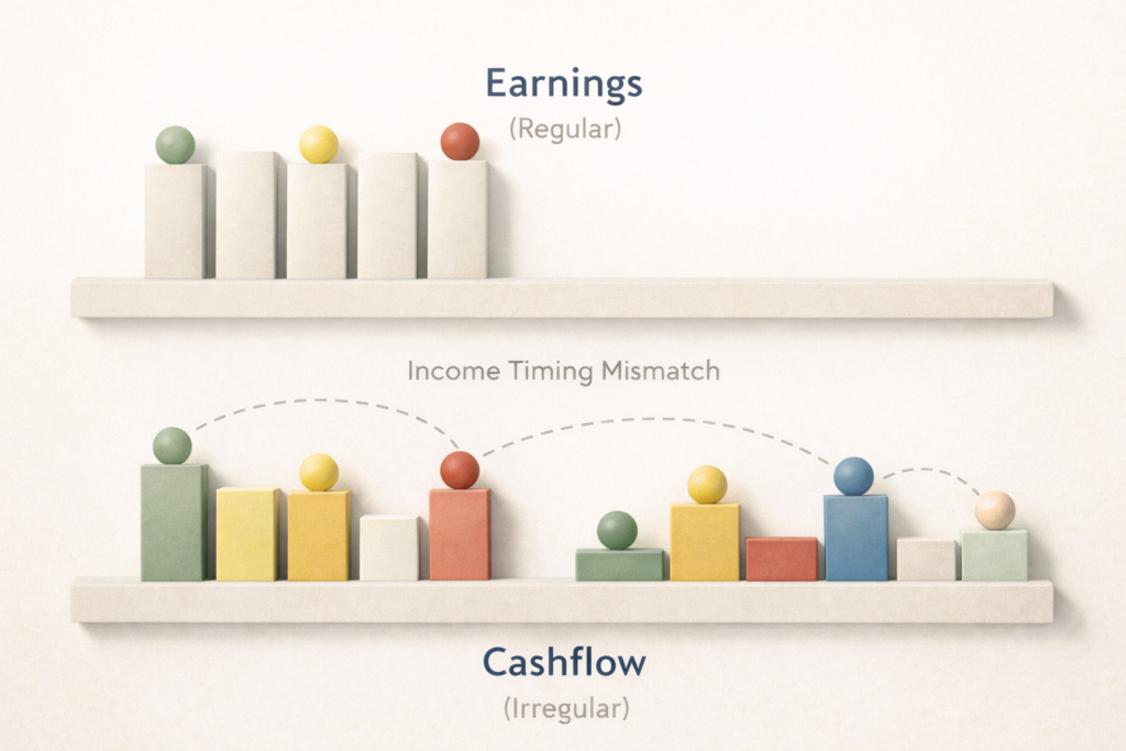 The unpredictability is therefore not caused by income scarcity, poor habits, or lack of discipline. It is produced by a structural mismatch between variable income timing and fixed financial obligations, which makes cashflow feel unstable even when earnings remain regular.